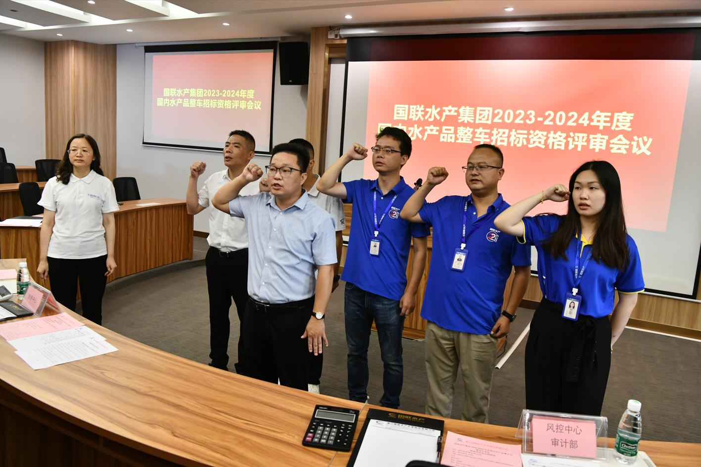 预审前,资格预审委员会在集团副总裁赵红梅的见证下,由集团仓储物流中心总监刘煜清带领资格预审委员会全体成员(集团风控中心法务部、集团风控中心审计部、集团财务中心、集团仓储物流中心)进行了庄严的宣誓。