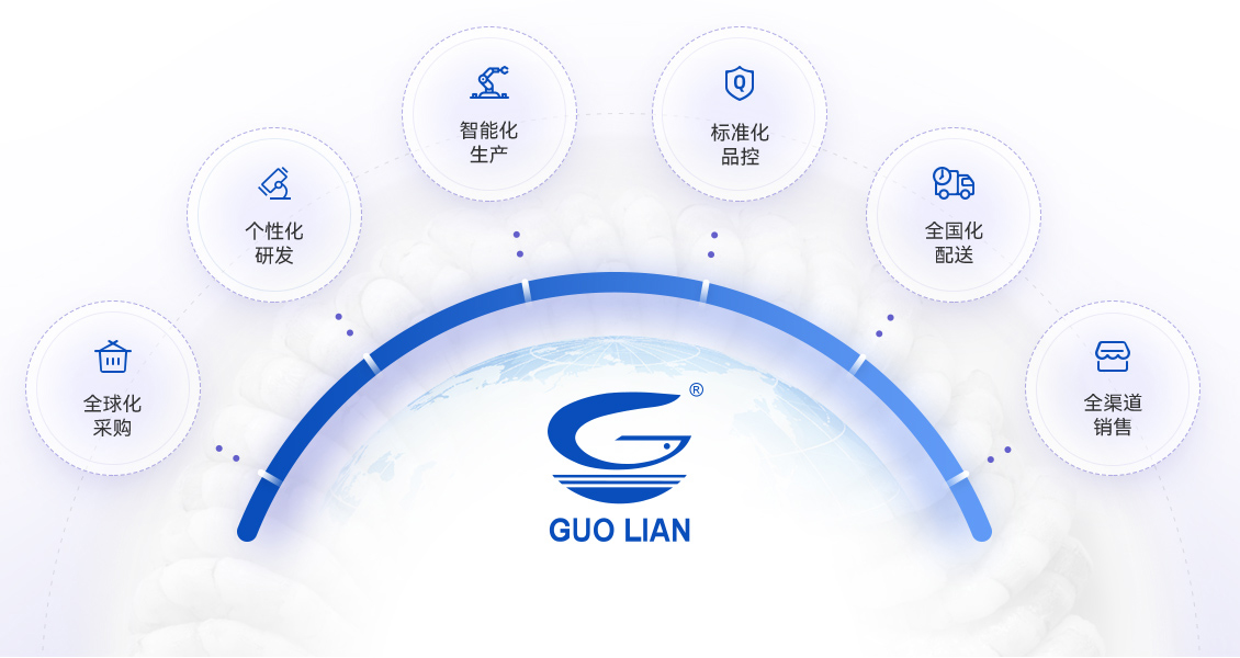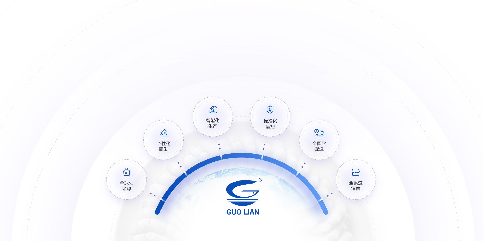 全球化采购、个性化研发、智能化生产、标准化品控、全国化配送和全渠道销售。