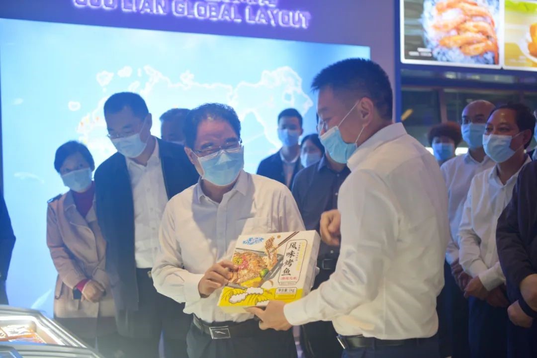 调研组本次调研国联水产海洋食品智造工厂,先后参观了智能化生产车间、国家级技术检验中心、预制菜研发中心等。在集团李忠董事长的详细介绍下,调研组全方位了解了我司自主研发的系列预制菜和全产业链布局,并对国联水产规模化的生产链、先进的智能技术运用、产业信息化、强大的产品研发实力给予了高度赞誉。叶贞琴强调,要科学规划产业布局,引导支持预制菜产业标准化、规范化发展,实现农民增收、企业增利、政府增税、行业增产。